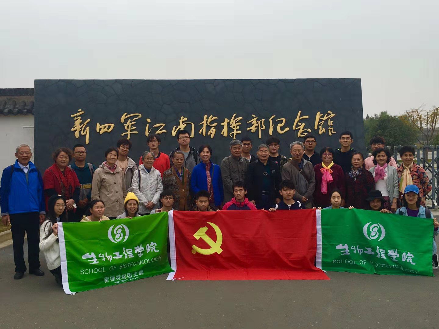 2019年10月27日,青山湾第四退休党支部带领Beat365官方网站Beat365官方网站酿酒1801团支部全体成员前往常州溧阳市新四军江南指挥部纪念馆开展党团共建活动,诸葛健、毛忠贵等老师与同学们回望峥嵘岁月,共话初心使命。