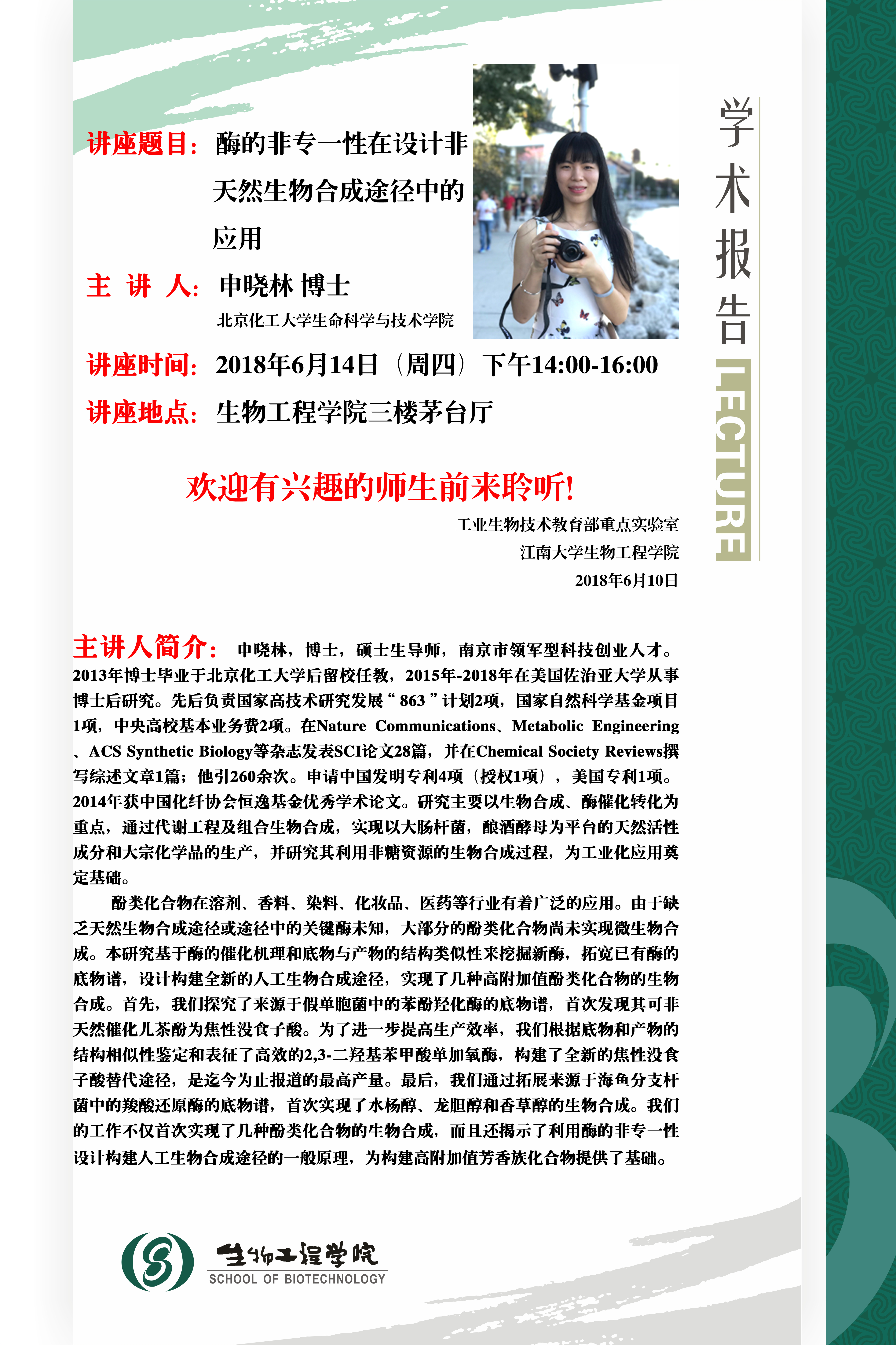 下一篇:6月14日学术报告:构建高效大肠杆菌平台菌株生产木糖衍生的高附加值产品