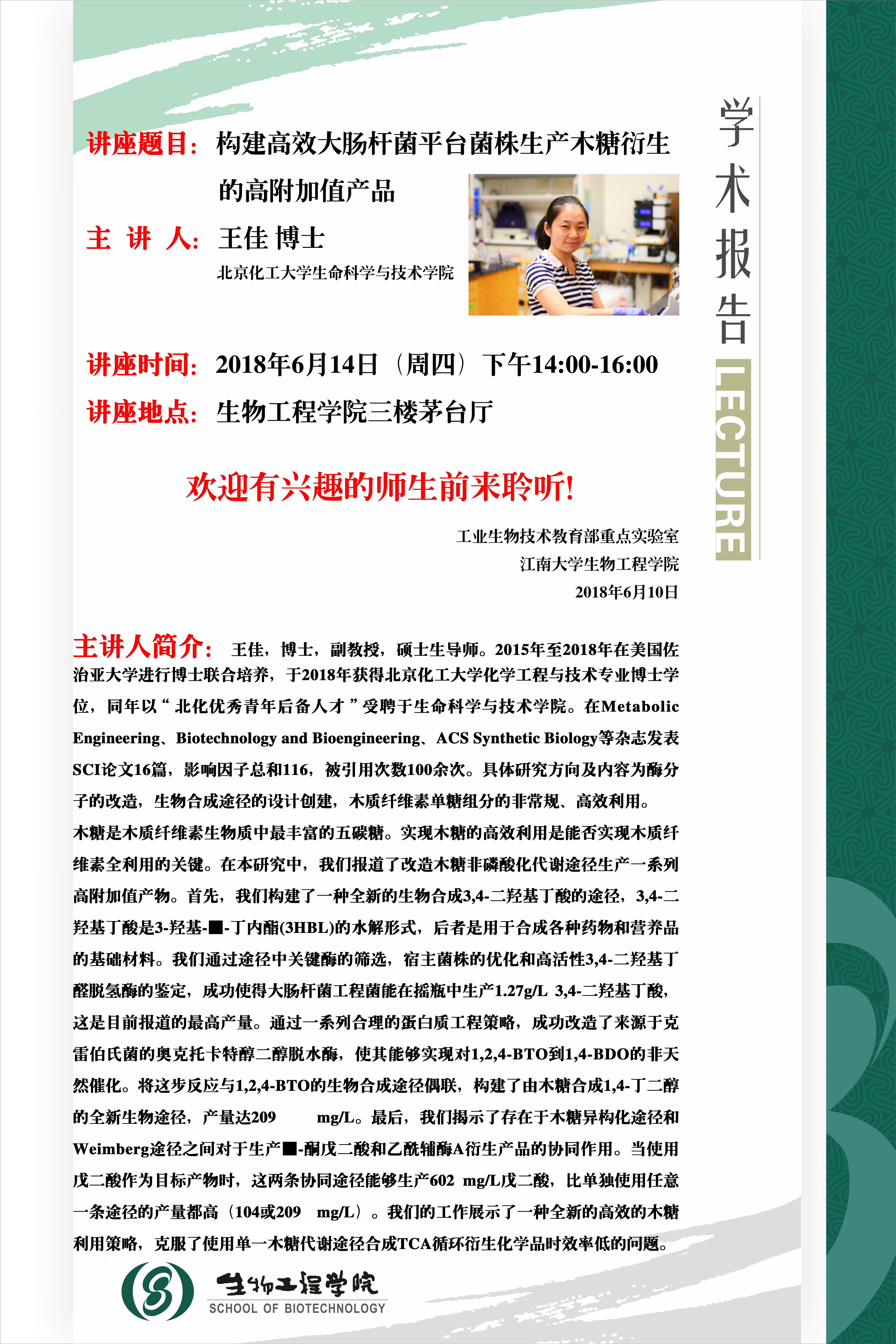 上一篇:6月14日学术报告:酶的非专一性在设计非天然生物合成途径中的应用