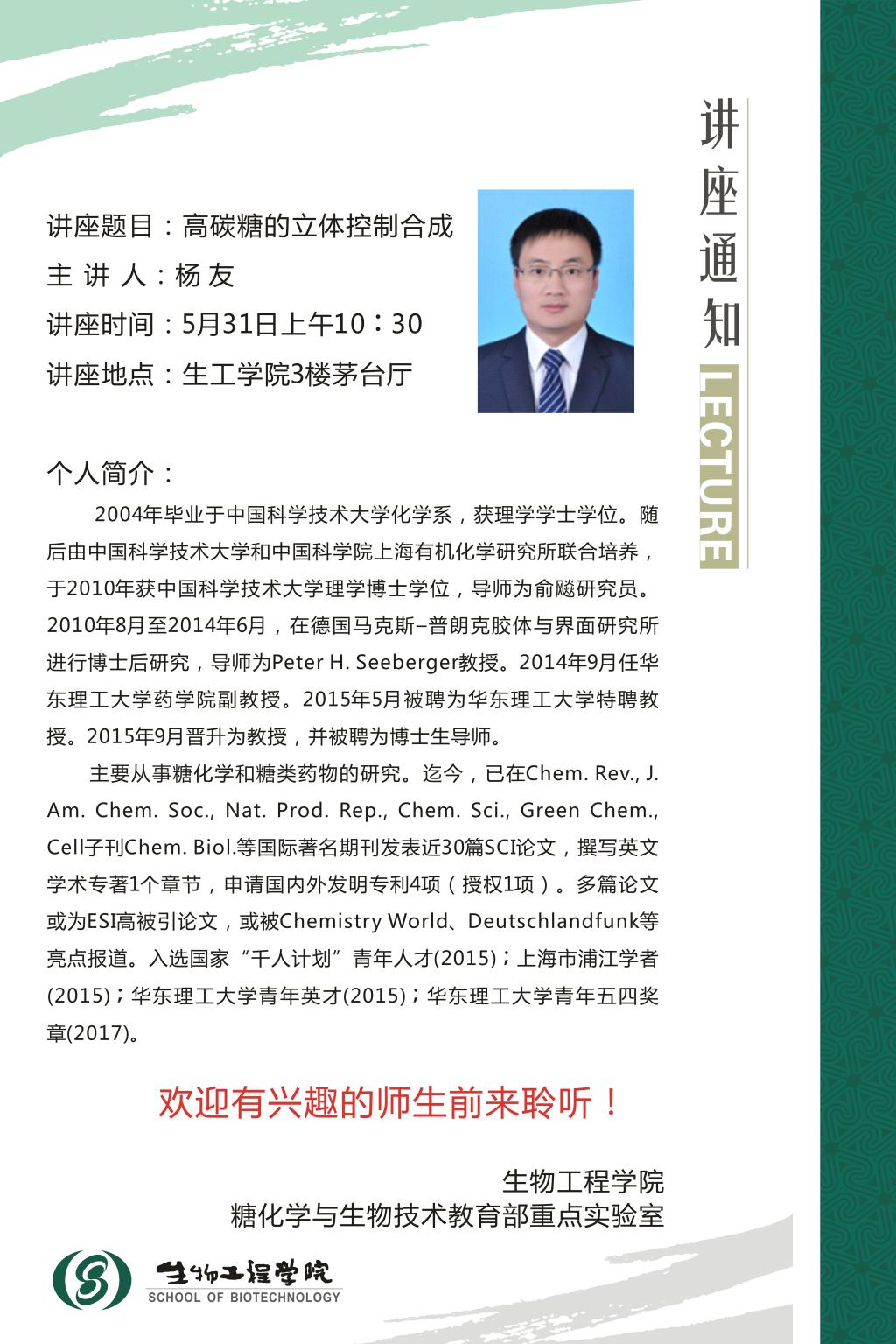 下一篇:5月30日学术报告:聚糖的合成:从寡糖到多糖