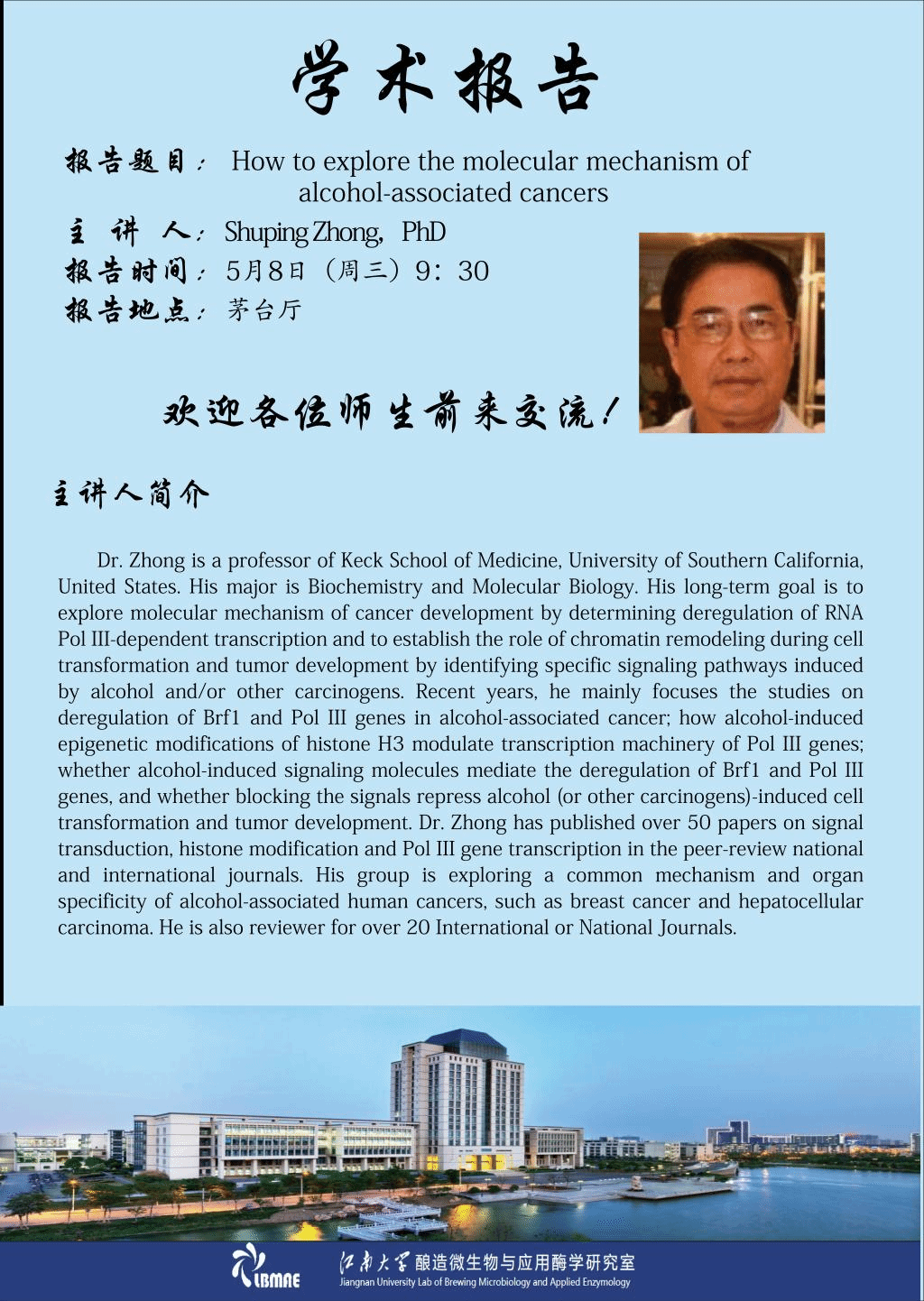 上一篇:5月15日学术报告:Study on Microorganisms for the Fermentation Industry of Japan:From Molecular Biology to New Product Development