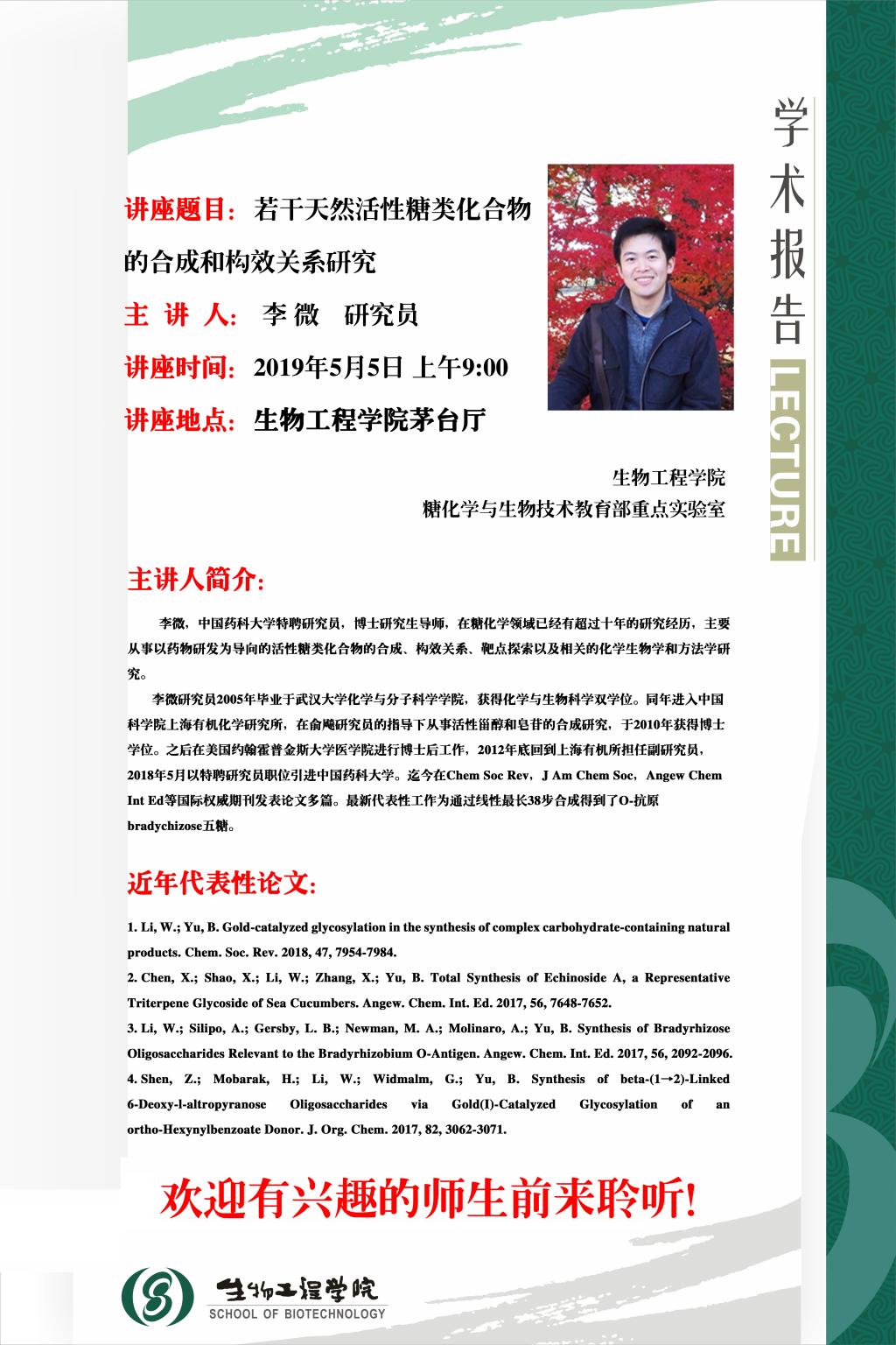 下一篇:5月5日学术报告:Sulfonium type α-glucosidase inhibitors indentified from genus Salacia,synthetic study and structural modification