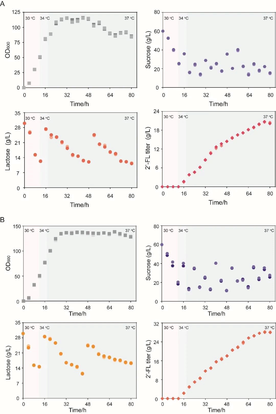 图5基于时序调控系统的2’-岩藻糖基乳糖的代谢调控