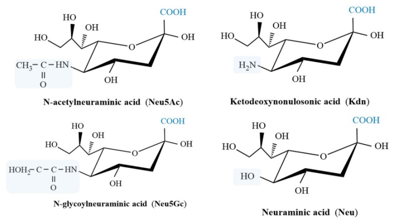 图5两种主要哺乳动物唾液酸(Neu5Ac和Neu5Gc)的进化