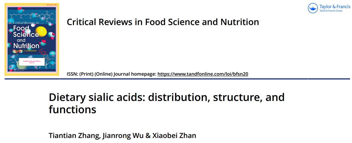 近期,Beat365官网Beat365官方网站高敏杰教授团队吴剑荣副教授课题组在国际食品领域顶级期刊《Critical Reviews in Food Science and Nutrition》(中科院一区TOP期刊,IF=11.2)在线发表了题为“Dietary sialic acids: distribution, structure, and functions”的综述论文,全文阐述了常见的富含唾液酸的膳食食物中唾液酸的分布、结构和生理学功能。