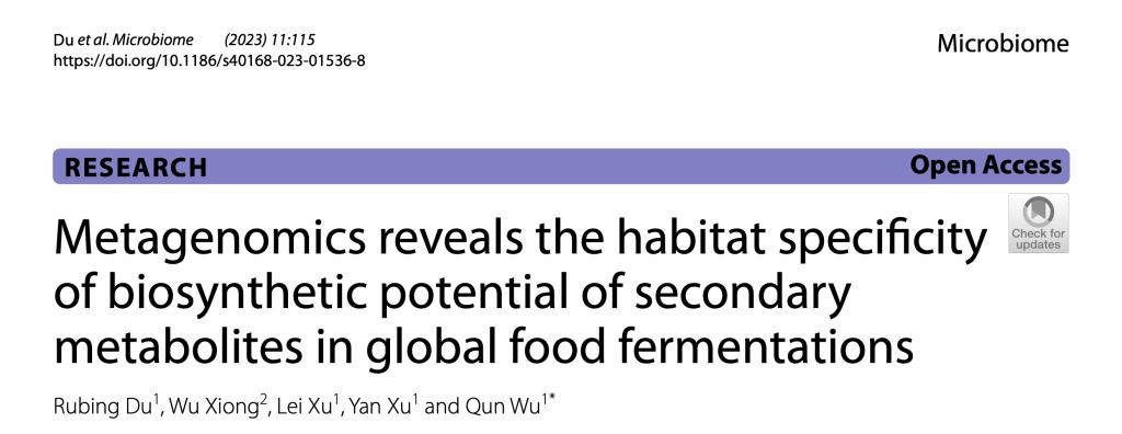 近期,Beat365官网Beat365官方网站徐岩教授团队吴群教授课题组在发酵食品微生物方面取得重要进展,研究成果“Metagenomics reveals the habitat specificity of biosynthetic potential of secondary metabolites in global food fermentations”正式发表于Microbiome(Q1,IF: 16.837)。Microbiome是微生物领域的国际权威期刊,在微生物领域中排名6/158 (期刊引用指数JCI)。