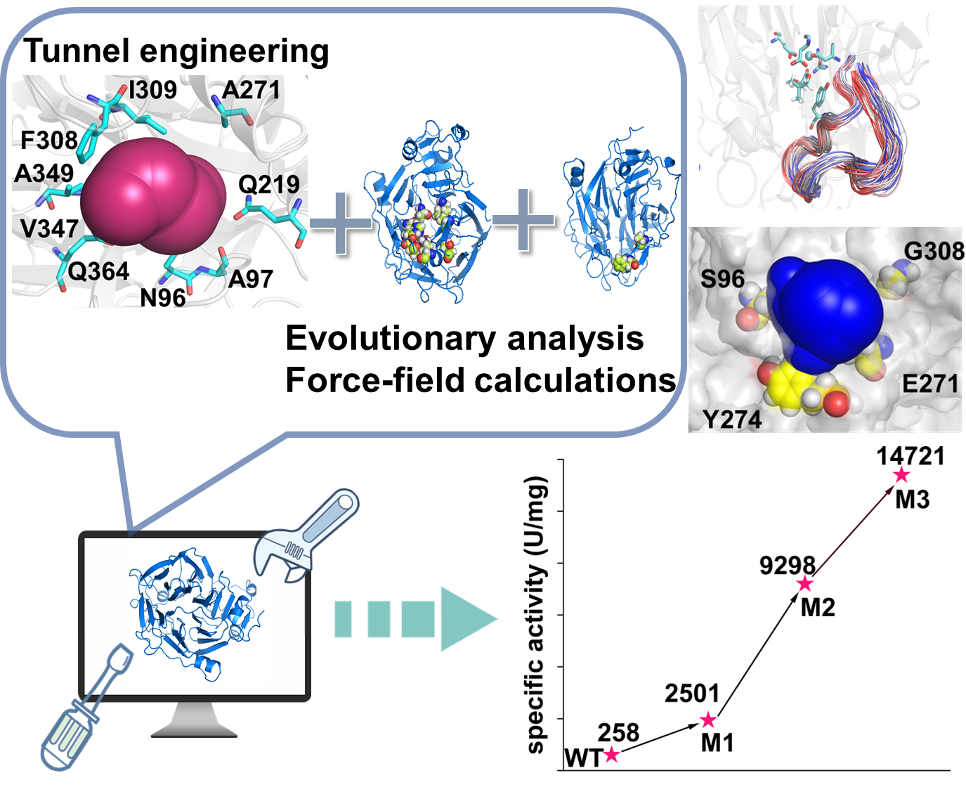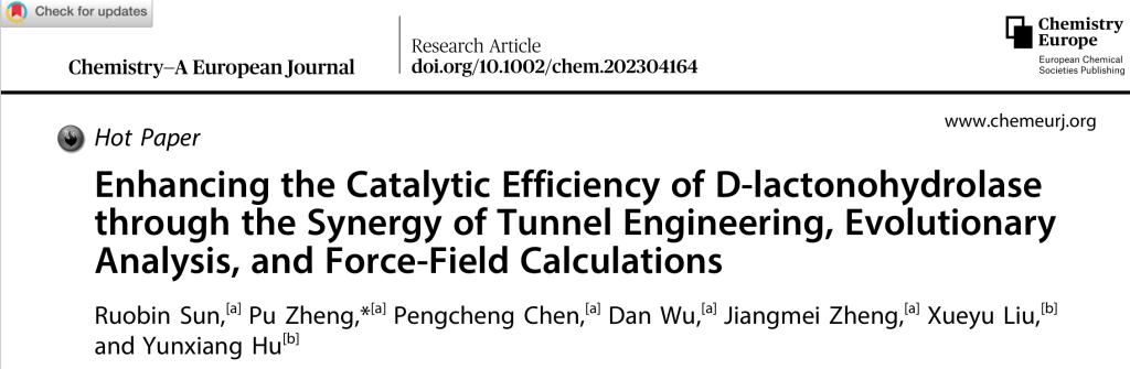 近期,Beat365官网Beat365官方网站郑璞教授团队在组合计算策略提高D-泛解酸内酯水解酶催化效率方面取得重要进展,并发表研究成果“Enhancing the Catalytic Efficiency of D-lactonohydrolase through the Synergy of Tunnel Engineering, EvolutionaryAnalysis, and Force-Field Calculations”, (Hot Paper).(https://doi.org/10.1002/chem.202304164)
