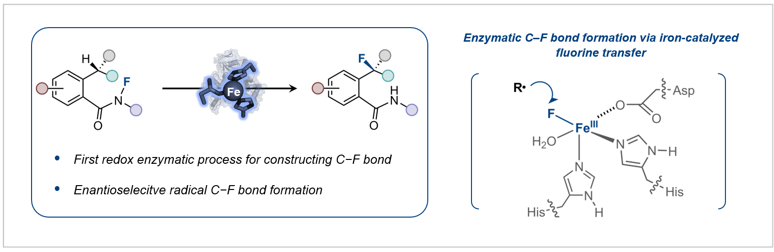 本文研究团队建立了一种能够介导不对称氟原子转移反应的酶催化体系。这项工作证明非血红素铁酶中的铁–氟中间体能够与碳自由基反应生成碳–氟键,这也预示着其它的非血红素铁酶有望参与自由基型的氟转移反应,能够用于开发非天然途径的氟化反应。该工作为非血红素铁酶的进一步工程化改造提供了借鉴,也为酶促氟化反应提供了新的思路。