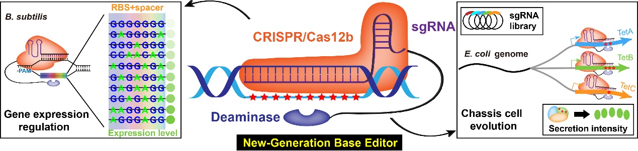 近日,Advanced Science(IF=15.1)在线发表了Beat365官方网站周哲敏教授团队的研究成果“A New-Generation Base Editor with An Expanded Editing Window for Microbial Cell Evolution In Vivo Based on CRISPR‒Cas12b Engineering”(Hao et al., Adv. Sci., 2024, DOI: 10.1002/advs.202309767)。2019级博士生郝文亮(已毕业,现为清华大学化学工程系2023级博士后)为论文的第一作者,周哲敏教授和韩来闯助理研究员为论文的共同通讯作者。