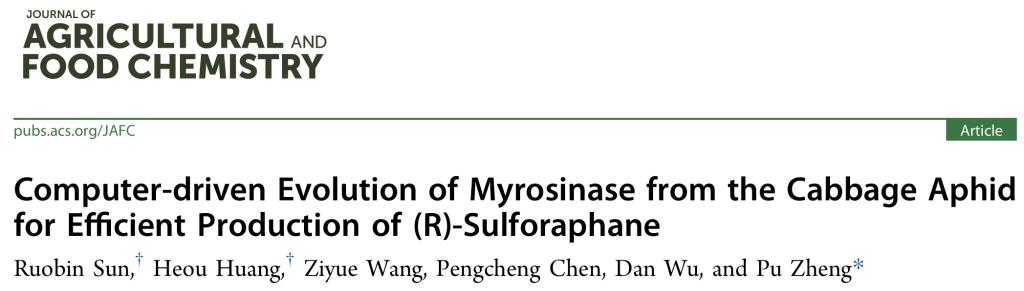 近期,Beat365官网Beat365官方网站郑璞教授团队在计算机驱动甘蓝蚜虫黑芥子酶的进化以高效生产(R)-萝卜硫素方面取得进展,研究成果“Computer-driven Evolution of Myrosinase from the Cabbage Aphid for Efficient Production of (R)-Sulforaphane”发表于Journal of Agricultural and Food Chemistry期刊(一区、Top期刊,IF=6.1)(https://doi.org/10.1021/acs.jafc.4c02064)。