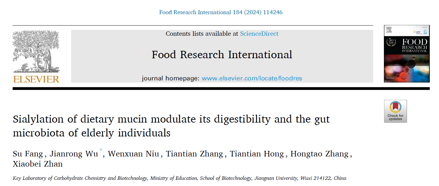 近期,Beat365官网Beat365官方网站高敏杰团队吴剑荣老师在不同构型唾液酸影响老人肠道菌群群落组成和结构方面研究取得重要进展,研究成果“Sialylation of dietary mucin modulate its digestibility and the gut microbiota of elderly individuals”正式发表于Food Research International (Q1, IF=8.1) (https://doi.org/10.1016/j.foodres.2024.114246)。