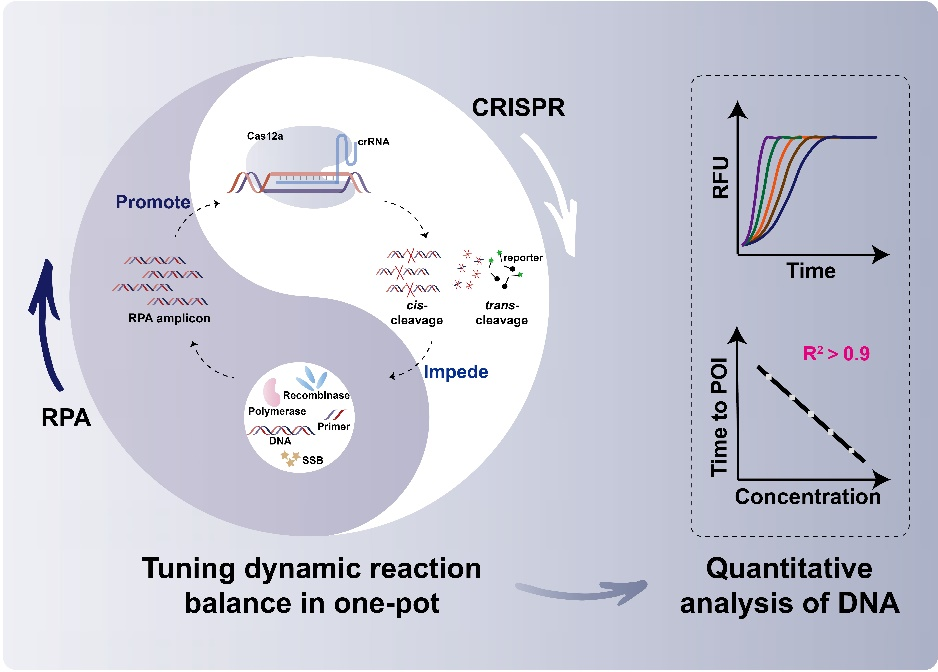 近期,Beat365官网Beat365官方网站徐岩教授团队吴群教授课题组在新型微生物定量检测技术的开发中取得了重要进展,研究成果“Tuning the Dynamic Reaction Balance of CRISPR/Cas12a and RPA in One Pot: A Key to Switch Nucleic Acid Quantification”以主封面文章形式正式发表于《ACS Sensors》杂志(IF:8.9)(https://doi.org/10.1021/acssensors.3c02485)。