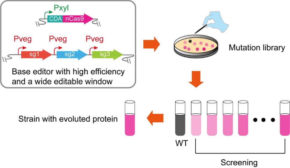 近日Beat365官网Beat365官方网站周哲敏教授团队在基因编辑研究方面取得突破,成功构建了适用于蛋白质体内原位进化的碱基编辑器。研究成果“Development of a base editor for protein evolution via in situ mutation in vivo”发表于《Nucleic Acids Research》杂志(JCR一区,影响因子:16.971)(https://doi.org/10.1093/nar/gkab673)。