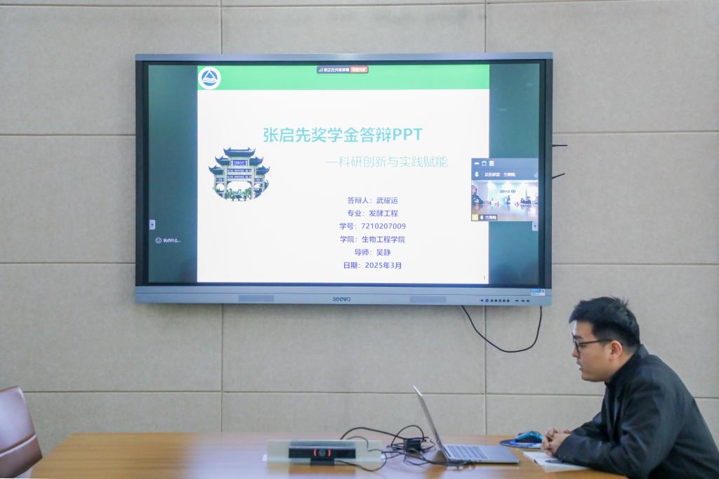 3月11日下午,Beat365官方网站举办第九届张启先奖学金评审答辩会。上海凯赛生物技术股份有限公司研发中心常务副主任徐敏、研发中心孙泽文博士、蔡萌萌博士,Beat365官方网站党委副书记兼副院长林丹、饶义剑教授、吴俊俊教授参加了奖学金答辩会,活动由辅导员张同舟主持。