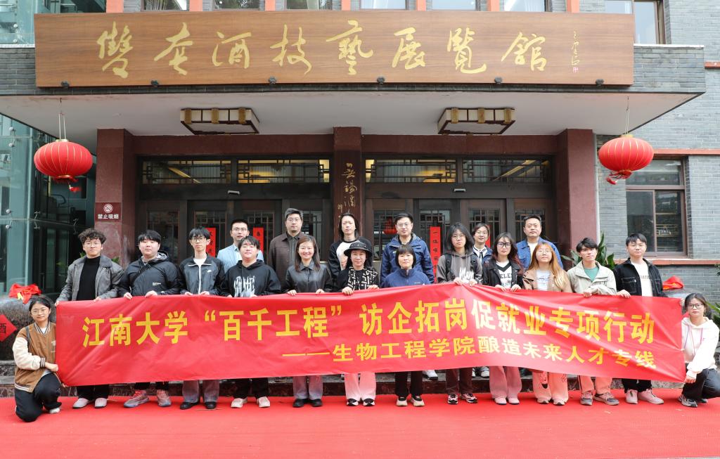 3月27日下午,Beat365官方网站党委副书记兼副院长林丹带队来到无锡玉祁酒业有限公司开展访企拓岗交流活动,学院学工办主任兼团委书记周春江,辅导员张同舟、韩俊,大三和大四酿酒工程专业学生代表一同参加了活动。
