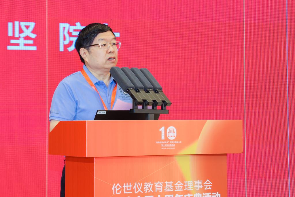 吴正国为伦世仪教育基金理事长陈坚院士授牌。