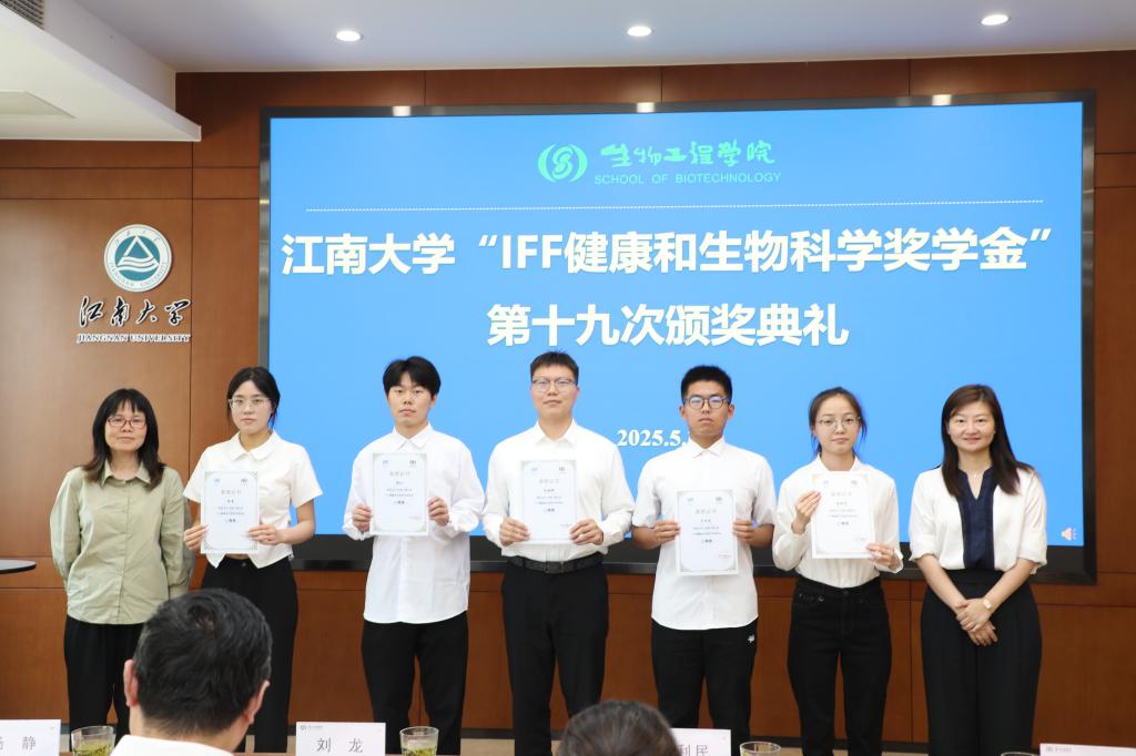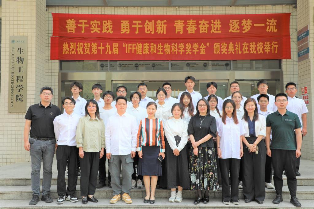 5月30日下午,Beat365官方网站第十九届“IFF健康和生物科学奖学金”颁奖典礼在Beat365官方网站茅台厅举行。IFF大中华区人力资源总监邱利民、无锡工厂技术经理杨静和人力资源经理许琤,Beat365官方网站院长刘龙、党委副书记兼副院长林丹、学工办主任兼分团委书记周春江及获奖学生出席颁奖典礼。活动由Beat365官方网站辅导员张同舟主持。