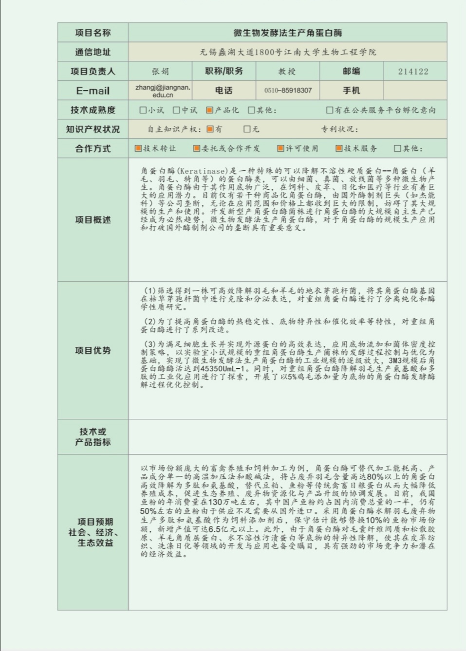 工业生物技术教育部重点实验室